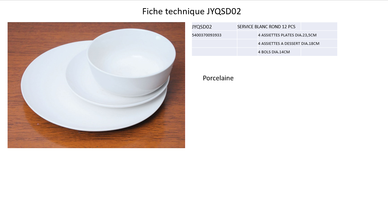 WHITE TABLEWARE SET 12PCS